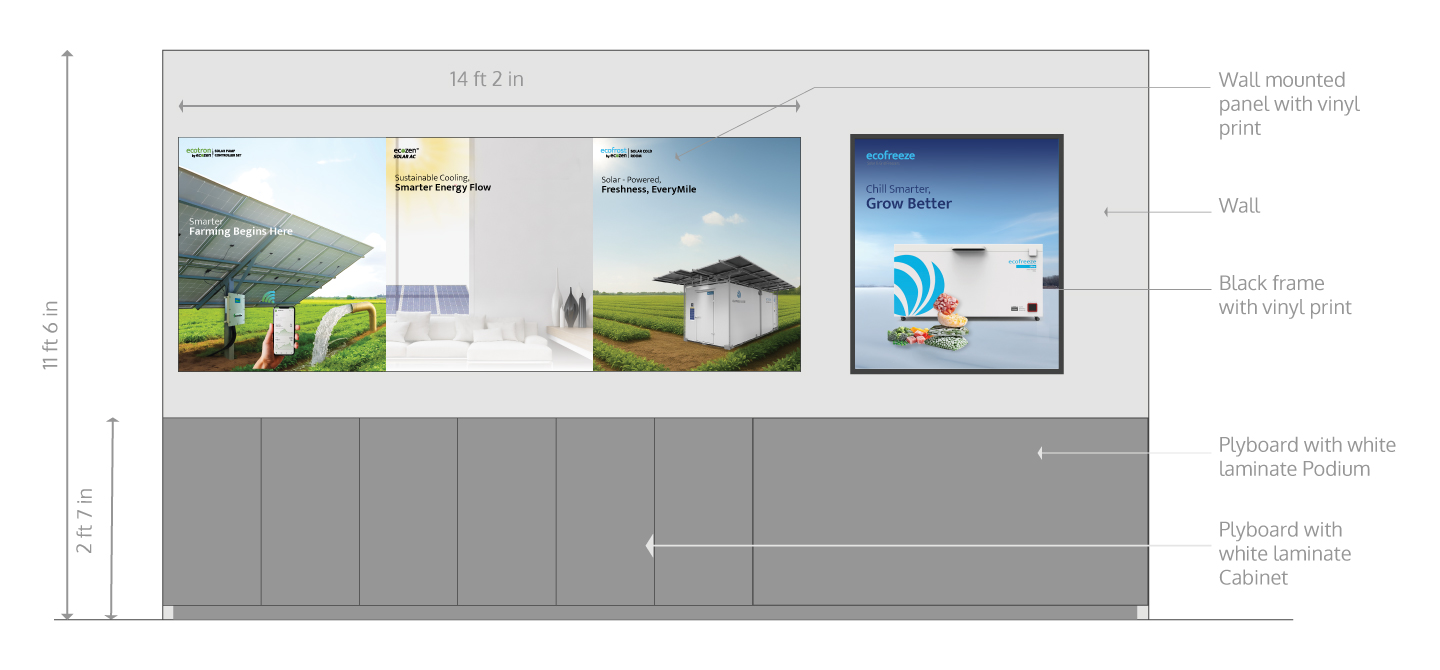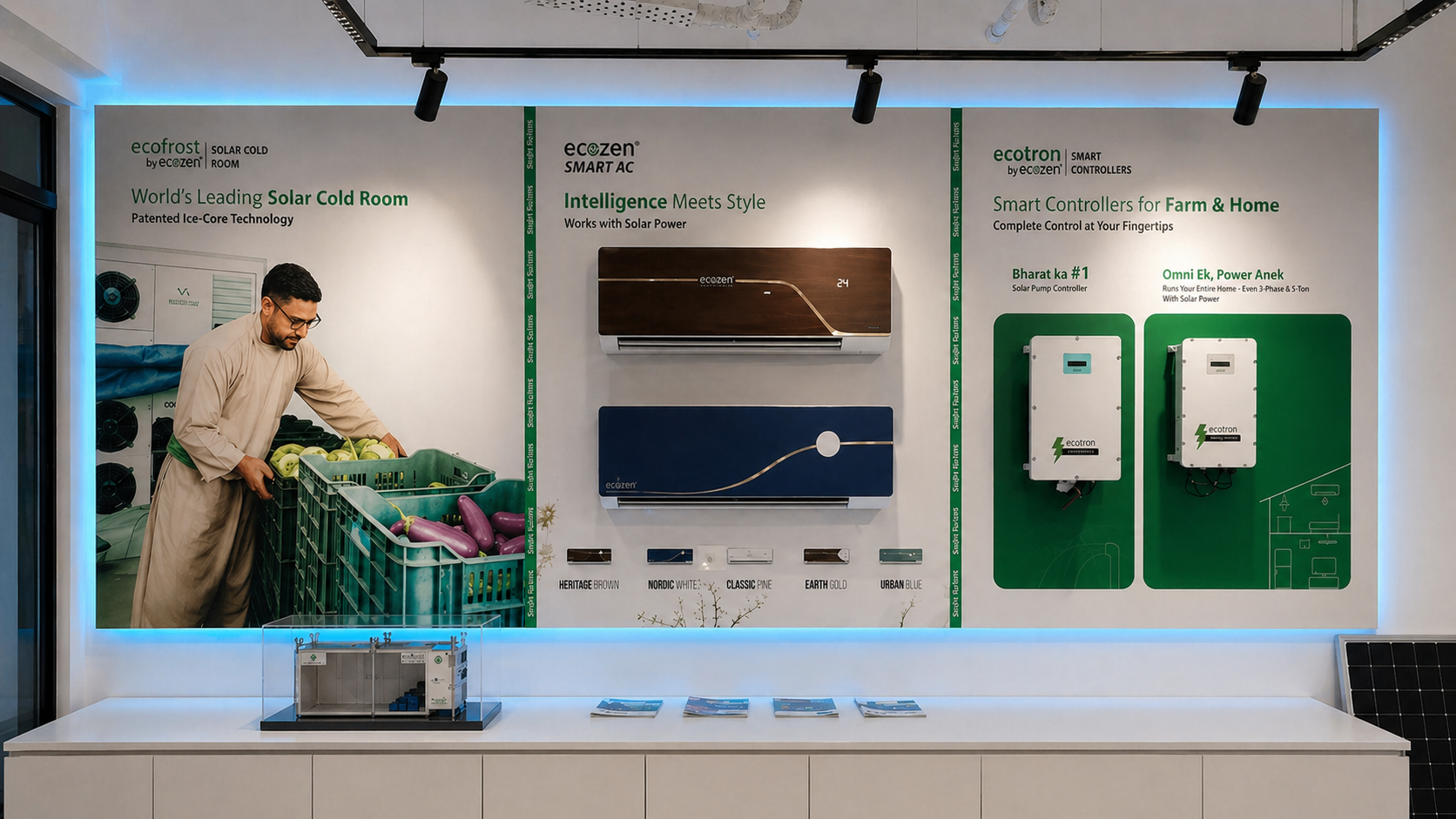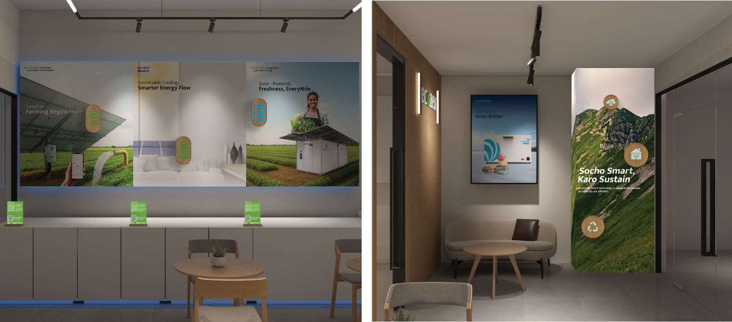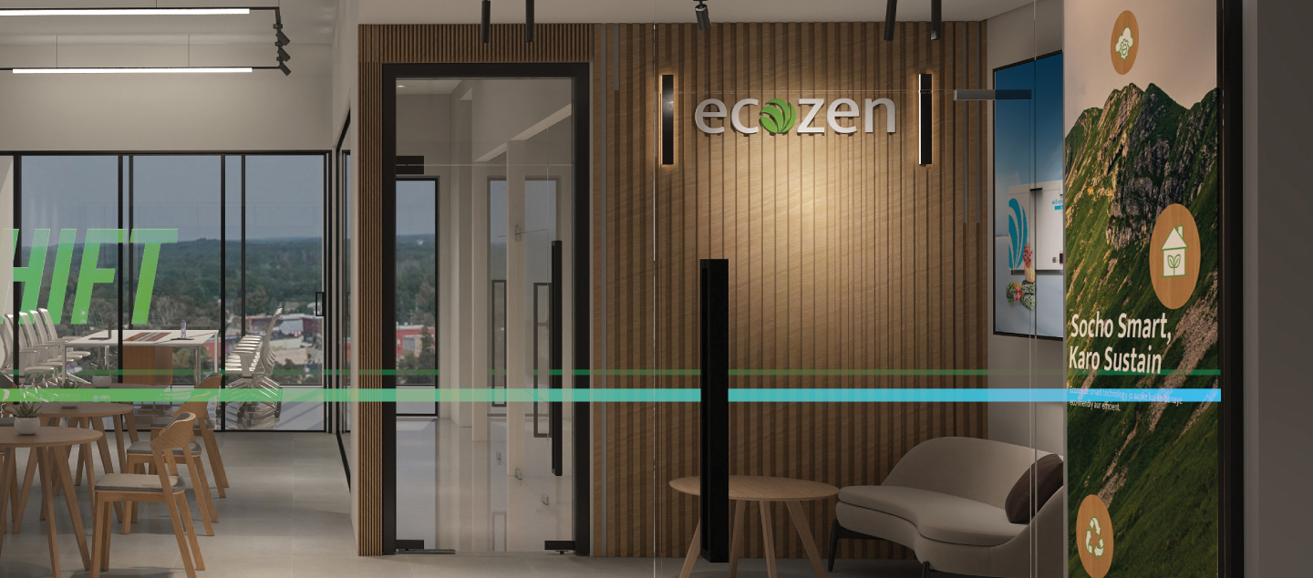 The environment seamlessly blends warm materials and strategic graphics to reflect Ecozen’s vision of powering a smarter, greener future.