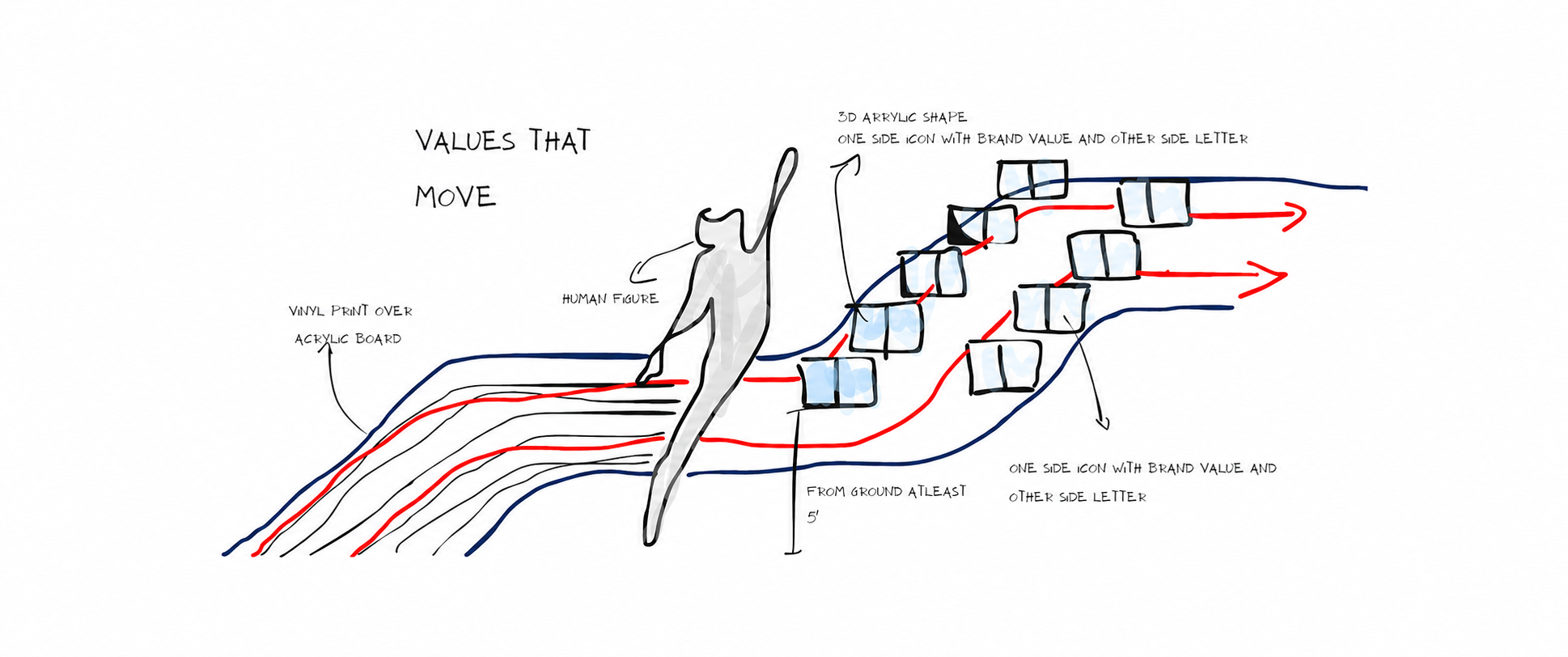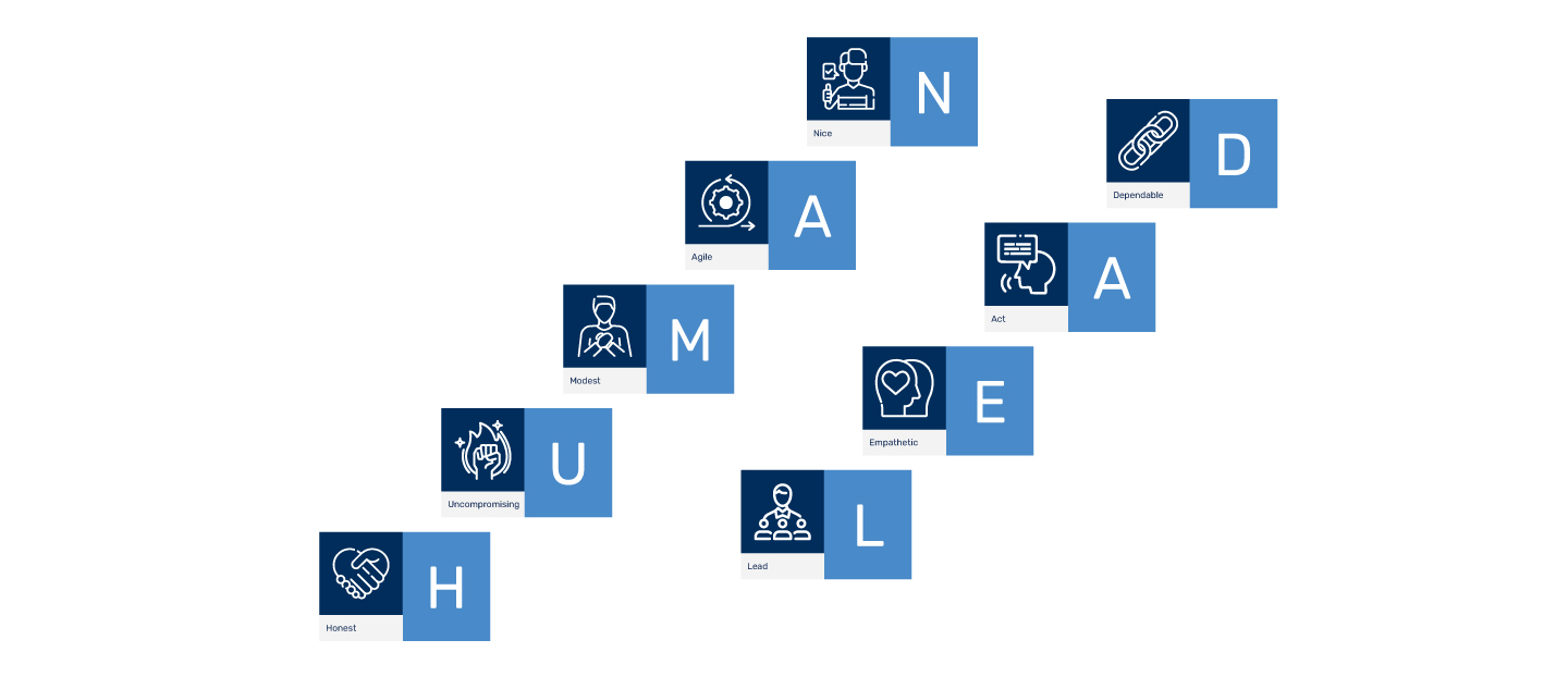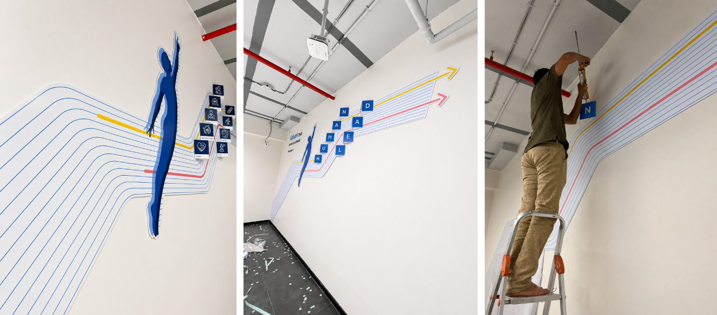 The concept behind this wall art is to showcase the brand values while creating an inspiring atmosphere for the people in the space. The values “HUMAN” and “LEAD” are incorporated into the artwork to enhance the overall interior, reinforcing a strong and consistent brand presence.